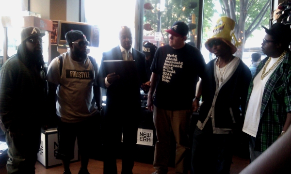 Kwanza Hall of the Atlanta City Council stopped by New Era downtown toting more than just a budget for some new fitteds. Carrying a proclamation for A3C founder Brian Knott, the Atlanta City Council recognized A3C for bringing in all kinds of hiphop for all kinds of ATLiens.