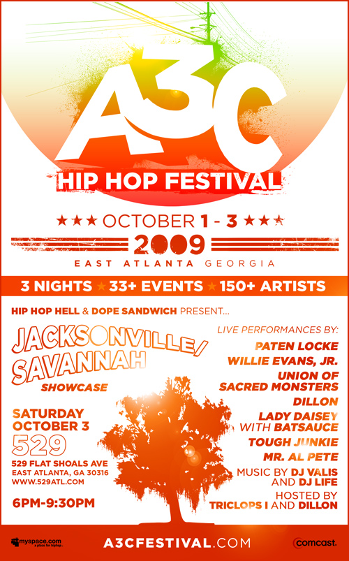 Most of the people on this list are people who have been making the A3C happen since the beginning. The A3C has grown from the blood, sweat and talent of artists like Dillion, Lady Daisey & Batsauce (the Smile Rays), Willie Evans Jr and Paten Locke (aka Therapy... also the Smile Rays). And that's not to mention Union of Sacred Monsters (Dope Sandwich), Tough Junkie, Mr. AL Pete, DJ Valis, and DJ Life.