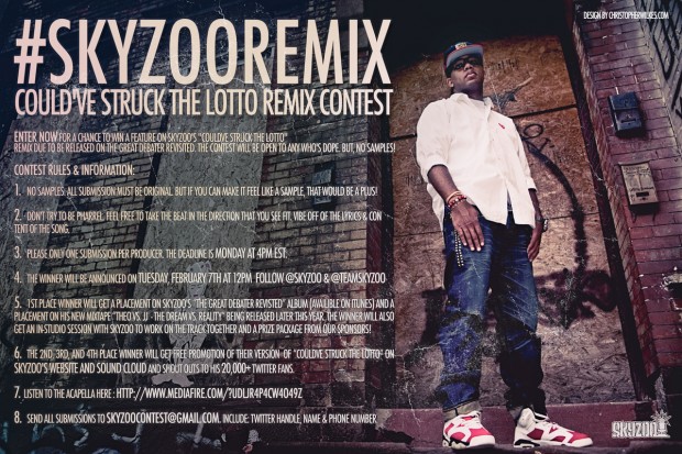 Enter now for a chance to win a feature on Skyzoo’s “Couldve Struck the Lotto” remix due to be released on The Great Debater Revisited. The contest will be open to ANY who’s dope. BUT, NO SAMPLES!