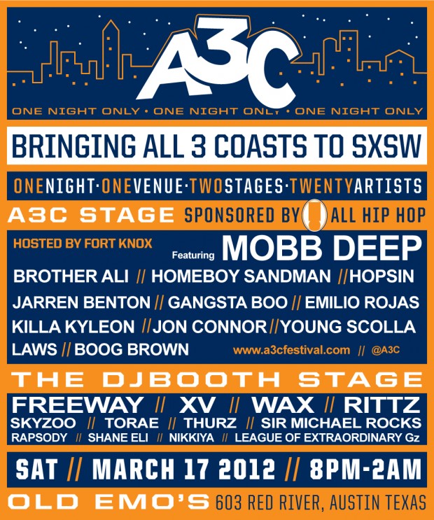 Topics: Featured, Killa Klyeon, a3c, News, djbooth.net, emo's, Homeboy Sandman, sxsw, Laws, allhiphop, Hopsin, young scolla, OCD: Moosh & Twist, Jarren Benton, Consequence, Showcase, Emilio Rojas, newsletter, A3C Update, 2012, Mobb Deep, Brother Ali, Jon Connor