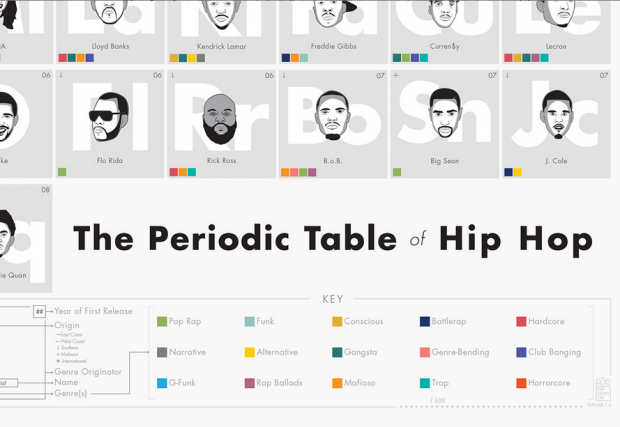 In preparation for the 10th Anniversary A3C Festival (Oct 8-12th) we took some time off from producing the world's largest hip-hop festival and went into the lab to create the "The Periodic Table of Hip-Hop." This unique piece of art is NOW available at Pop Chart Lab