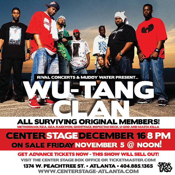 Speaking of Wu-Tang... The Wu is going to be at Center Stage next Thursday, December 16. We have one pair of tickets to give away. To win, leave a comment with listing at least one alternate names for each member of the Wu (example Rza = Bobby Digital). Good Luck!