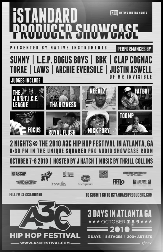 The world famous iStandard Producer Showcase presented by Native Instruments returns to the A3C Hip Hop festival for the third year in a row October 7- 8, 2010 in The Masquerade music complex’s Purgatory.