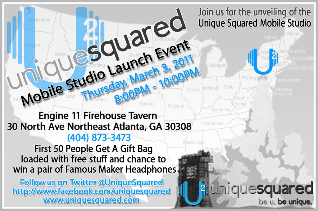 Unique Squared are the folks who outfitted a LOT of the acts at last year's A3C with gear (mixers, turntables, etc.) and they'll be unveiling their Mobile Studio this Thursday evening, March 3rd @ Engine 11 Firehouse Tavern.