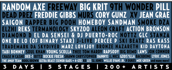 New artists confirmed to perform at the 2011 festival include Dead Prez, Ying Yang Twins, Da Beatminerz, Torae, Varsity Squad, Stanza, Grip Plyaz, Killa Kyleon, Voli, RayDawn, Reef The Lost Cauze, Statik Selektah, Sha Stimuli, A.Dd+ and Clan Destined.