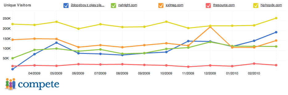 The only thing that makes me a bit nervous about the deal (and this might just be my own paranoid mind at work) is that it's a big consolidation of power in terms of the flow of rap information. The combined traffic of the two sites is above 300k uniques per month, which would make the Complex Media Network the #1 controller of hip hop news on the web.