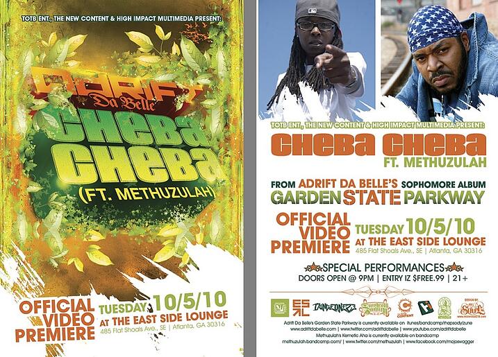 Atlanta, GA, October 4, 2010 – Adrift Da Belle (THE OTHER FEMALE MC) prepares for the release of a candid, music video for the ATL underground smash hit Cheba Cheba. Cheba the song features Hip Hop veteran Methuzulah (formerly Mojo Swagger) and production by Illastrate. Cheba the video shows a lighter side of the ATL Underground Hip Hop community with humorous cameos from some of Atlanta’s most popular indie artists. Both Methuzulah and Adrift hold their own on the track, reminding naysayers of how true to their artistry they are, while visually making light of themselves for viewer entertainment.