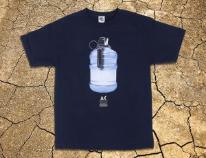 Akomplice has linked up with the full length documentary feature: "Blue Gold: World Water Wars", to offer a socially conscious line of t-shirts and water bottles that seek to raise awareness for the impending world water crisis. The 2008 documentary film by Sam Bozzo paints a future in which wars are fought over water as investors and governments jockey for control of a diminishing water supply.Akomplice has made use of the film’s provocative cover art of a water jug symbolically retro-fitted as a grenade on a range of three t-shirts.