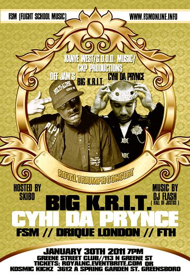 For all of those A3C fans in NC: FSM presents, "The Royal Triumph" featuring G.O.O.D Music/Def Jam/CKP's Cyhi Da Prynce and Def Jam's Big Krit In Concert.