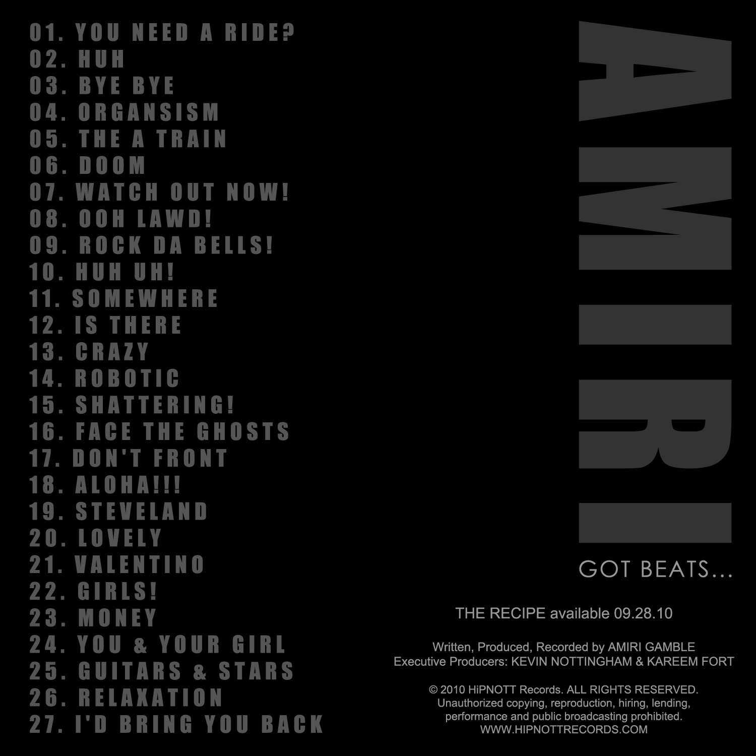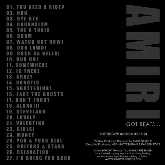 With only a week out until the release of his debut solo album, Amiri wanted to share some of the beats that were left on the shelf while making The Recipe with this beat tape Got Beats... The Main Ingredient For The Recipe. There's no denying that before anything, Amiri is a producer first and this beat tape highlights his strength - making beats.