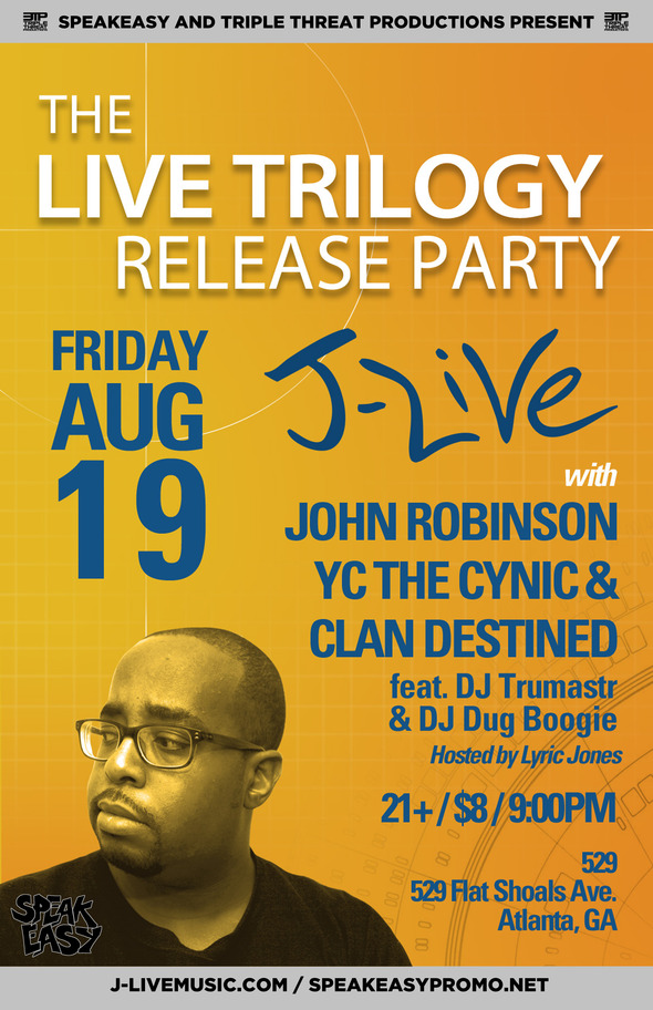 To celebrate "The Live Trilogy" series, J-Live and friends will be throwing Live Trilogy Release a party in Atlanta on 8/19 at the 529.