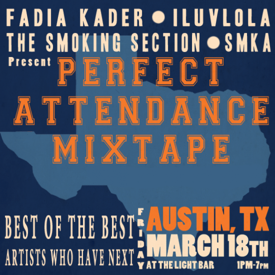 If you're in Austin this Friday, March 18, make sure to check out the Perfect Attendance Showcase featuring artists like, Big K.R.I.T, Skyzoo, Mac Miller, Blu, Cyhi Da Prince, Stalley, Tanya Morgan, Freddie Gibbs, Rittz, Smoke DZA, Belly, Surf Club, Emilio Rojas, Jackie Chain, Laws, Hollyweerd, Aleon Craft and so many more.