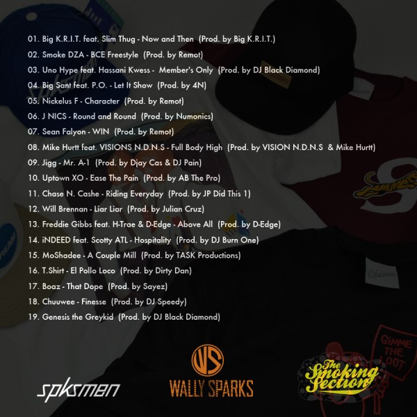 Last week, our folk over at the Smoking Section and the people at SPKSMEN Clothing joined forces with DJ Wally Sparks to put out the SPKSMEN Mixtape Vol. 1 with original material from many A3C alumni including Chuuwee, J Nics, iNDEED, Freddie Gibbs and Big K.R.I.T. and more! Check out the track listing below.